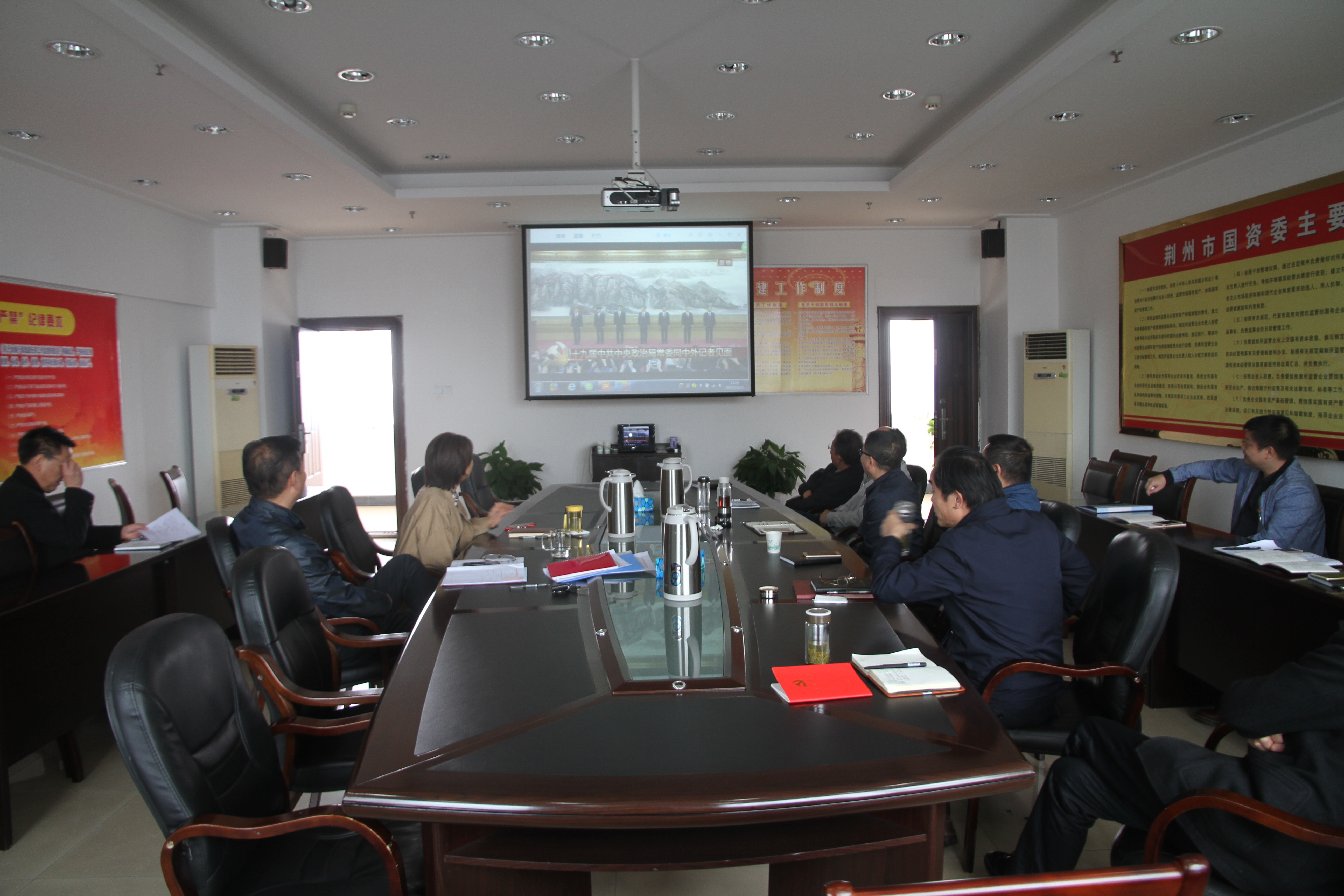 荆州市国资委党员干部集中收看十九届中央政治局常委同中外记者见面会