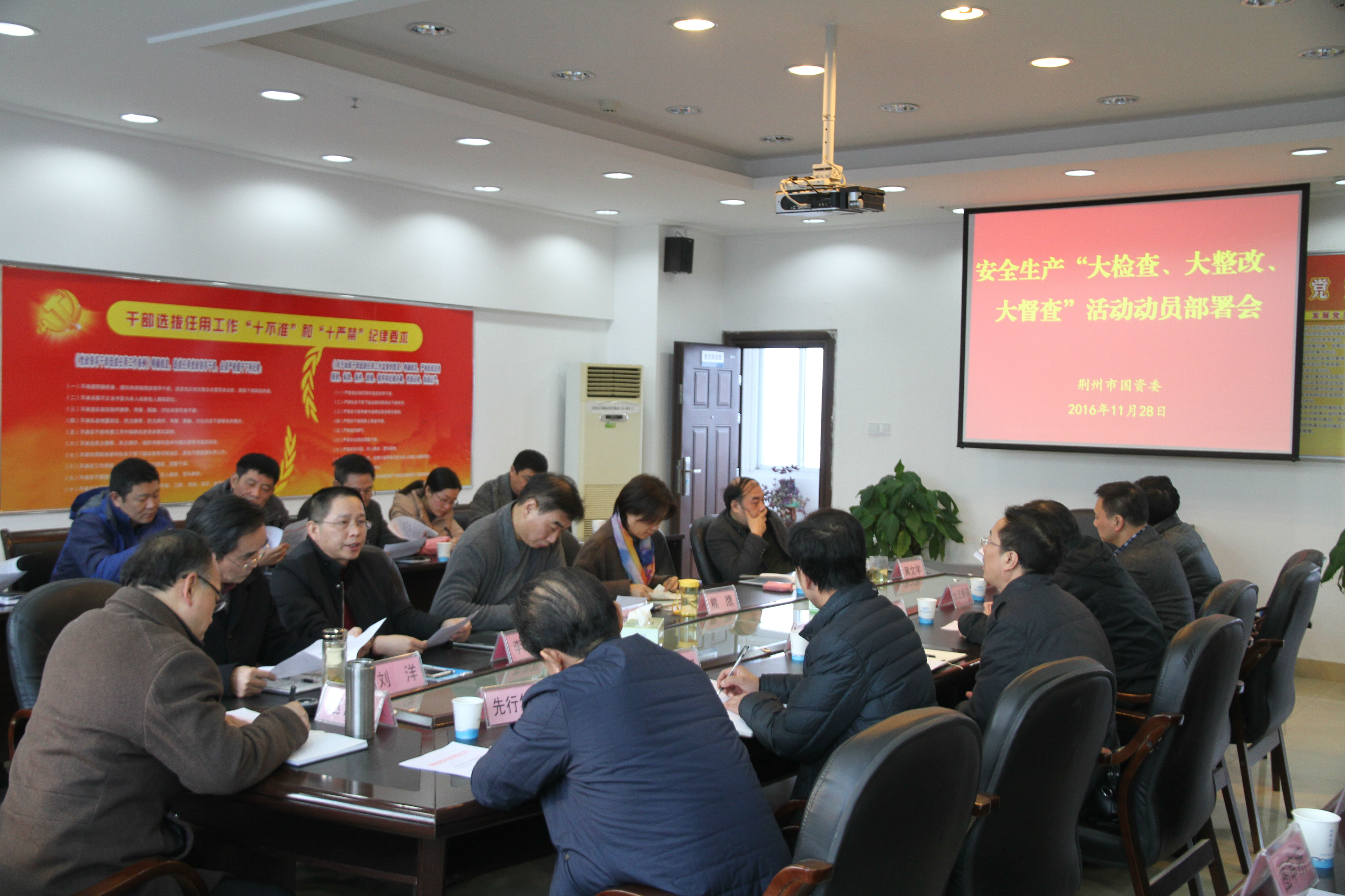 11月28日下午,为深刻吸取“11.24”江西丰城电厂施工平台坍塌特大事故教训,荆州市国资委召开安全生产“大检查、大整改、大督查”动员会,部署国资系统安全生产“大检查、大整改、大督查”工作。市国资委党委书记、主任熊鹰对安全大检查工作提出要求。市国资委党委班子成员、各出资企业主要负责人、委机关科室负责人参加会议。会议由市国资委副主任李海军主持。