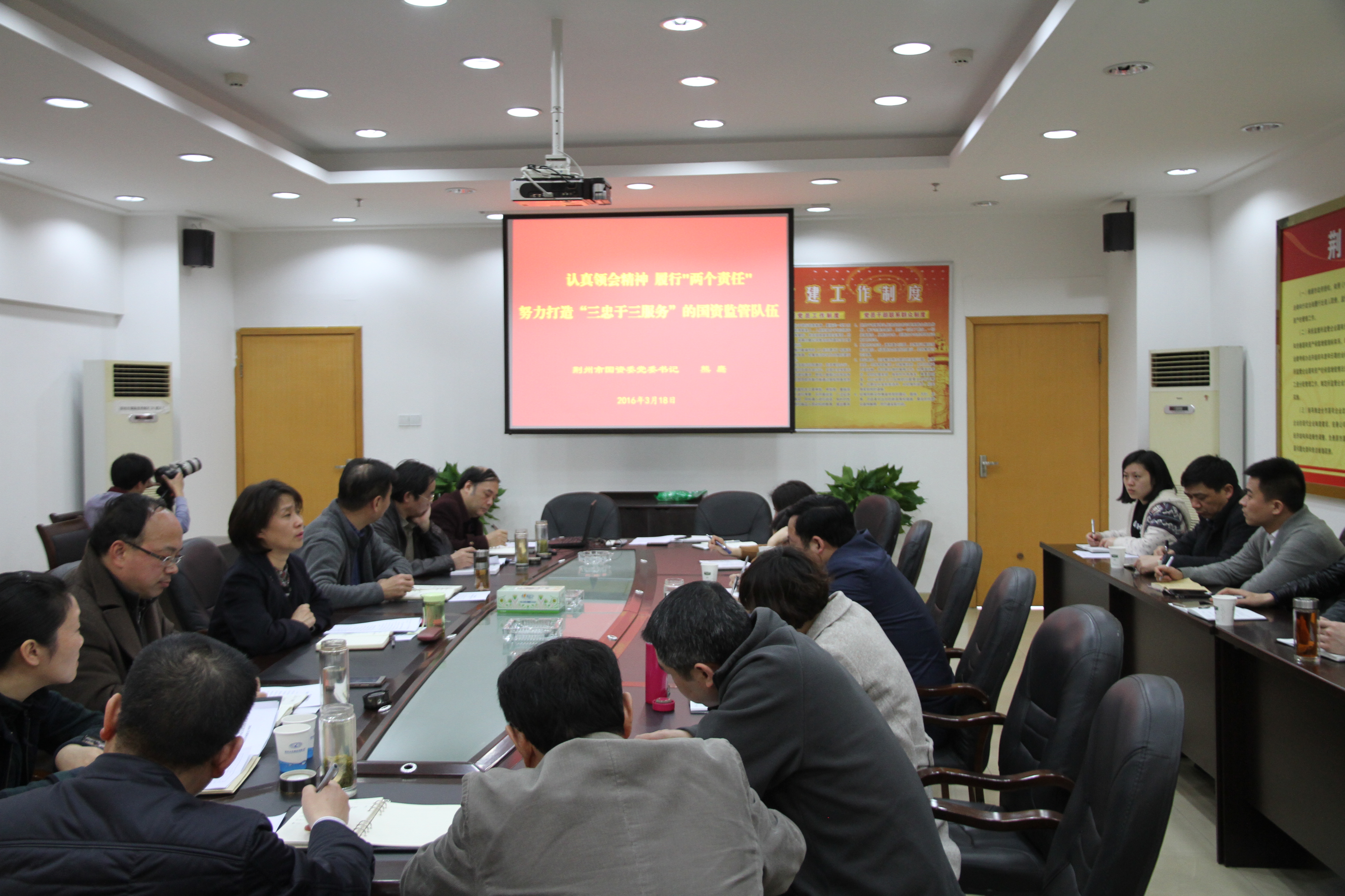 3月18日下午,国资委党委书记熊鹰为机关干部作了题为《认真领会精神,履行“两个责任”,努力打造“三忠于三服务”的国资监管队伍》的专题党课辅导报告。国资委党委班子成员、机关干部和工作人员聆听了报告。