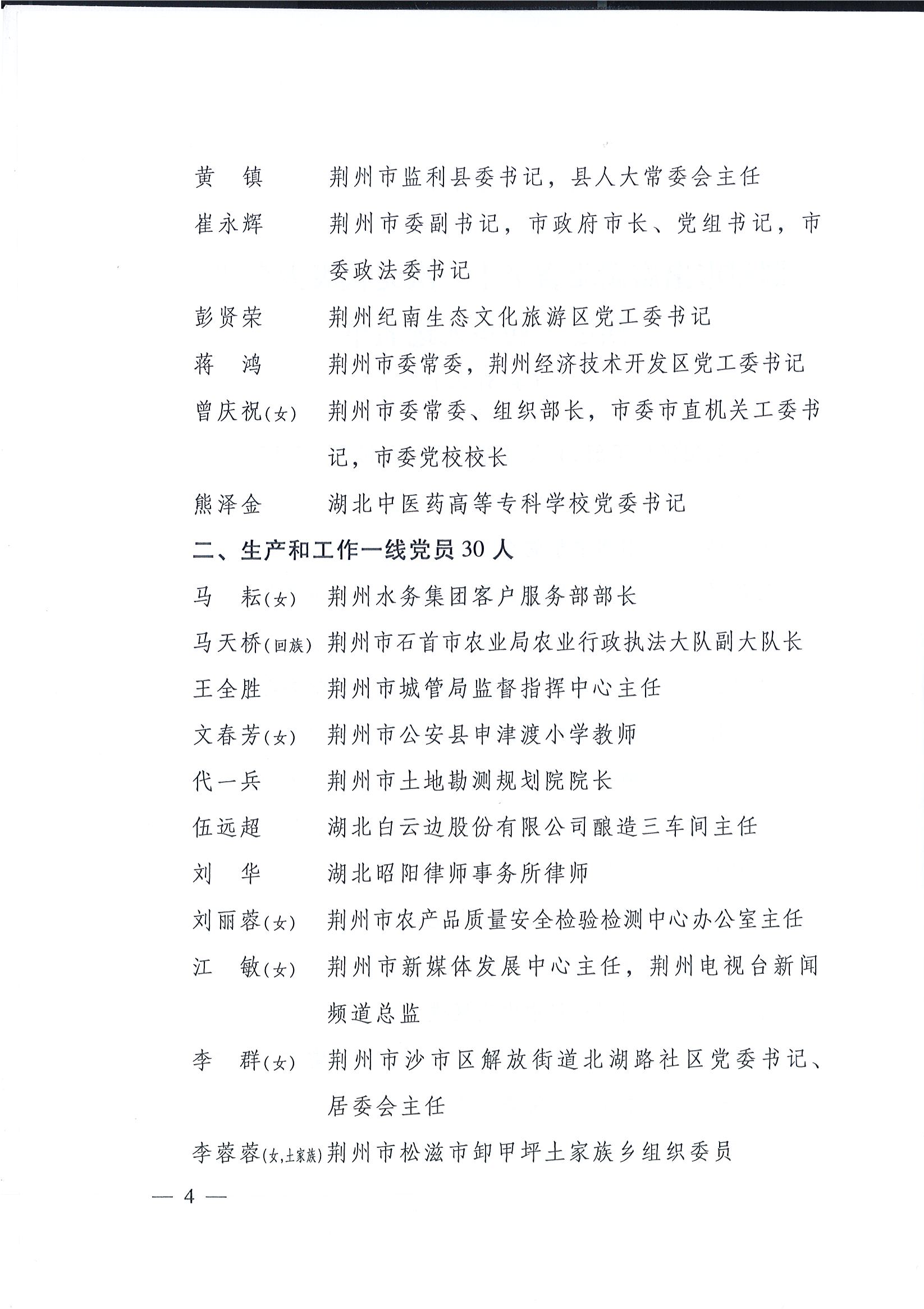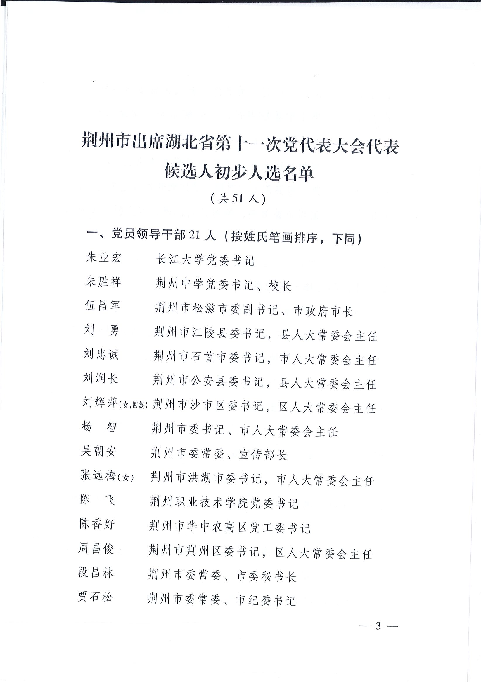 荆州市出席湖北省第十一次党代会代表候选人初步人选名单公示