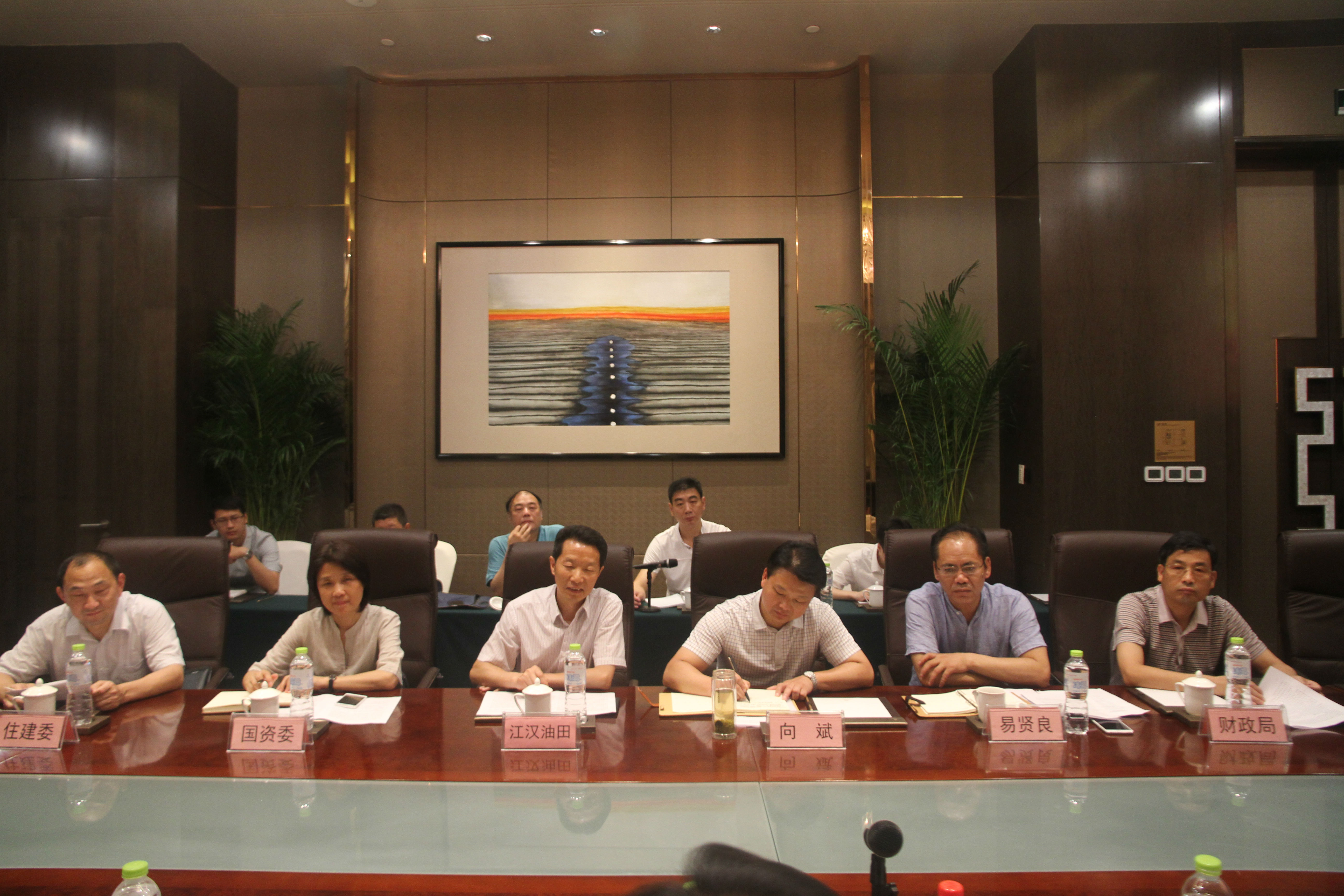 调研组实地察看了江汉石油管理局四机厂职工家属区,详细询问了职工家属区供水、供电、供气、物业管理的“三供一业”分离移交事项,并召开荆州市国有企业职工家属区“三供一业”分离移交座谈会。副市长向斌代表市政府作了工作汇报,力争2017年底中省在荆企业框架协议签订达到100%、项目维修改造协议签订100%、水电移交协议签订100%。江汉石油管理局、市财政局、住建委、供电公司、水务集团相关负责人作了表态发言。