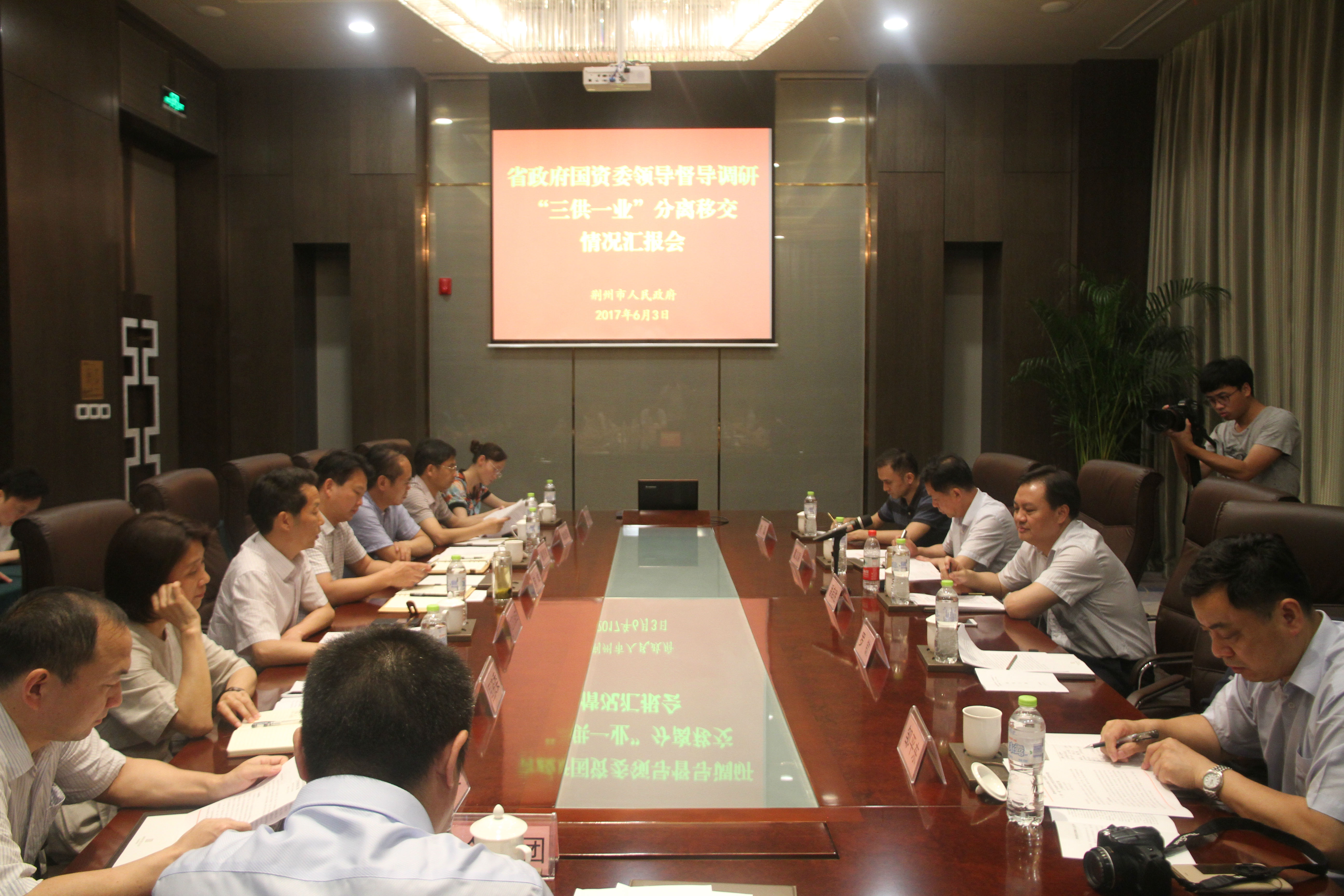6月3日,省国资委主任、党委书记潘启胜一行来荆州督导调研国有企业职工家属区“三供一业”分离移交工作。市委书记杨智,市委副书记、市长崔永辉会见调研组一行,市政府副市长向斌,市政府副秘书长易贤良,市国资委党委书记、主任熊鹰等陪同调研。