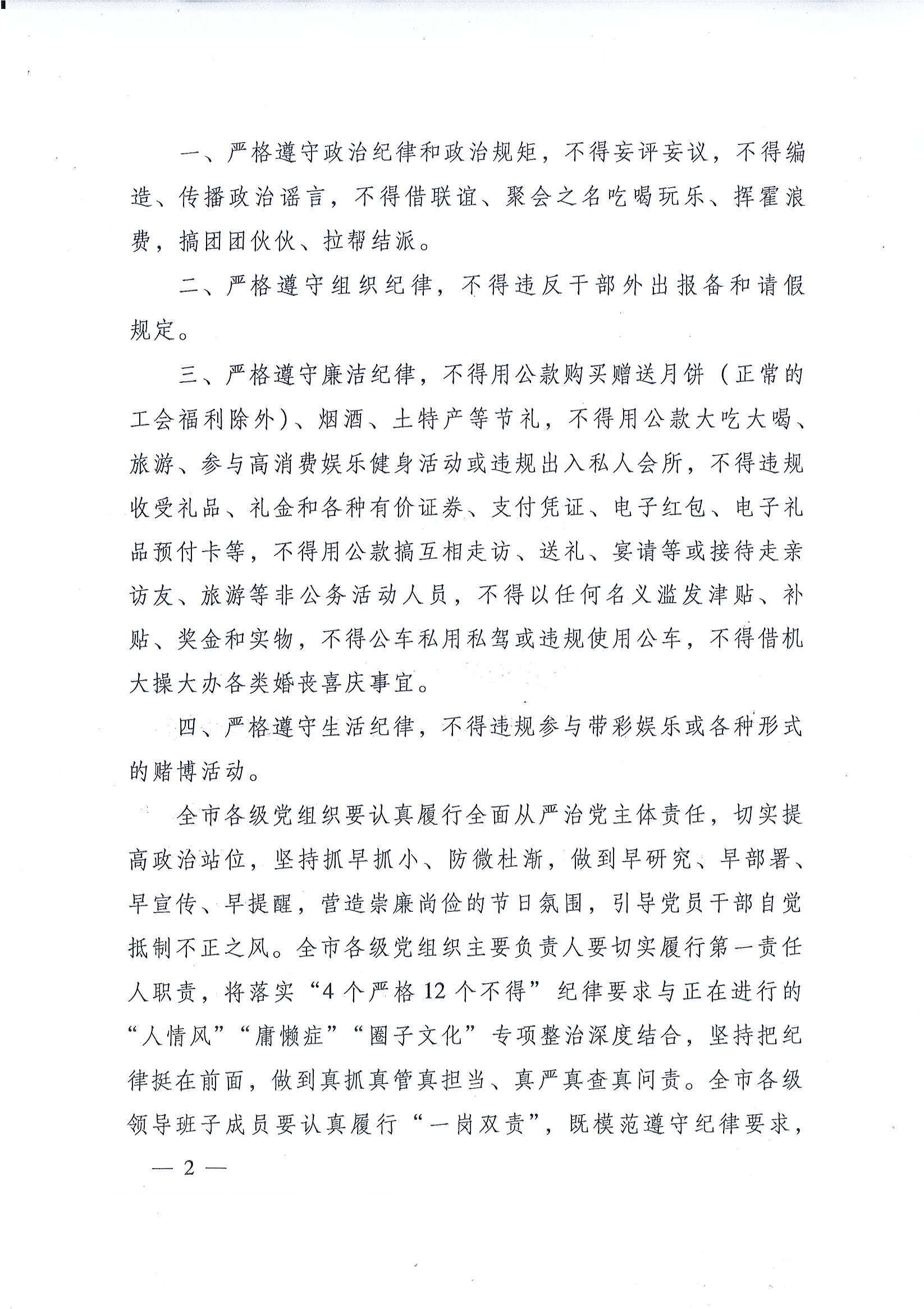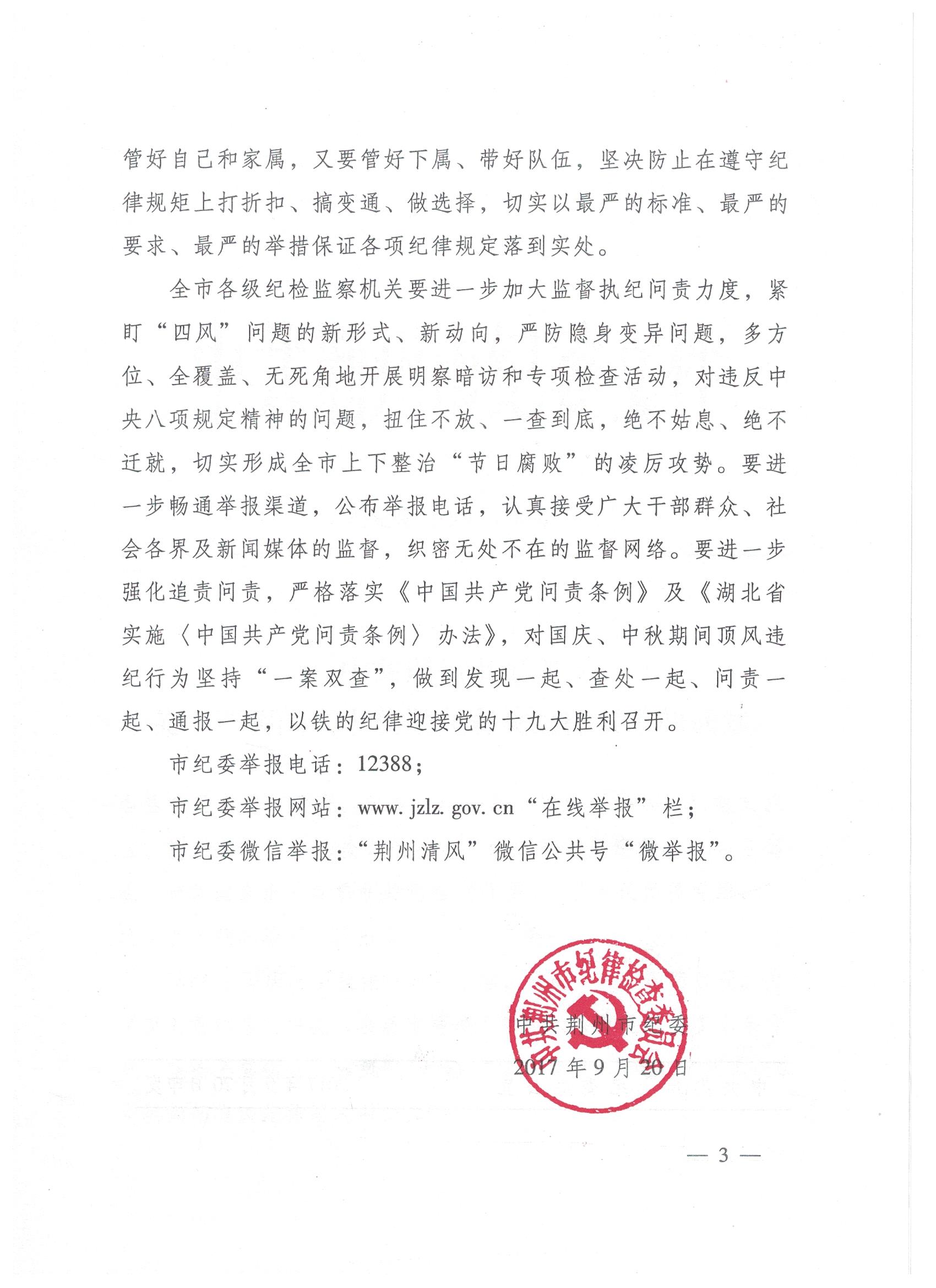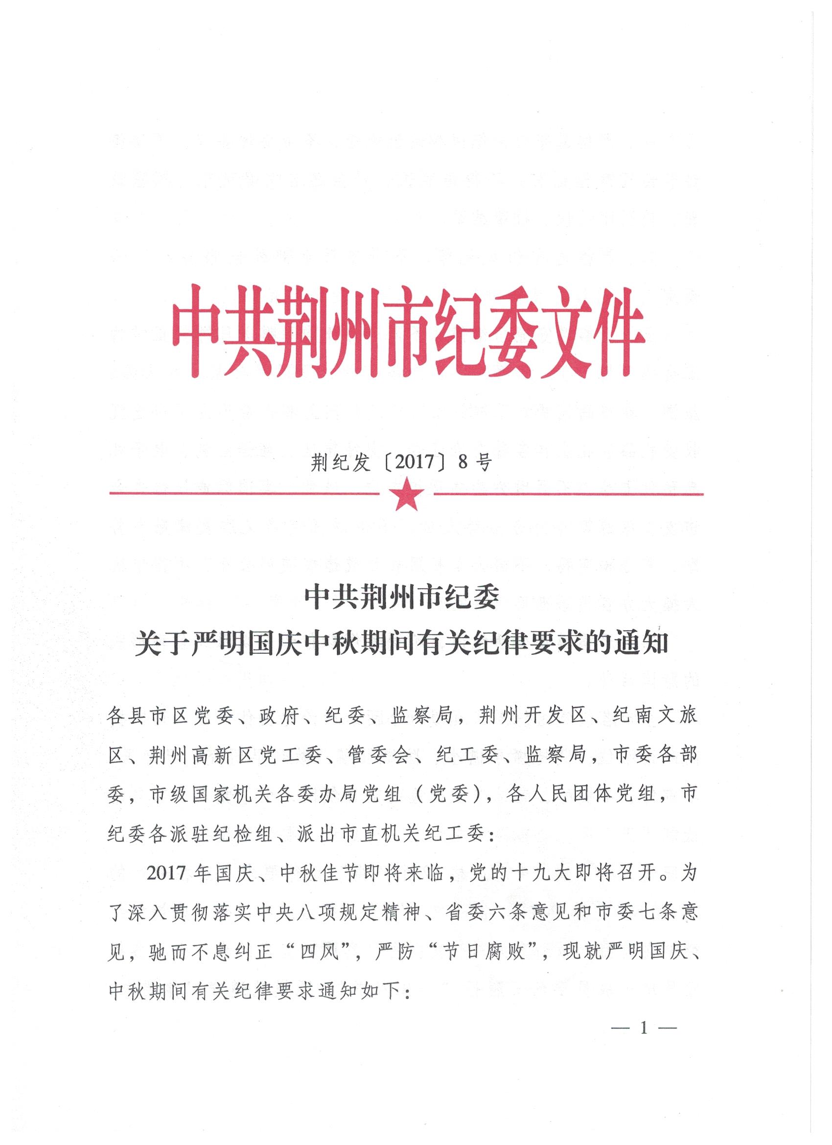 中共荆州市纪委关于严明国庆中秋期间有关纪律要求的通知